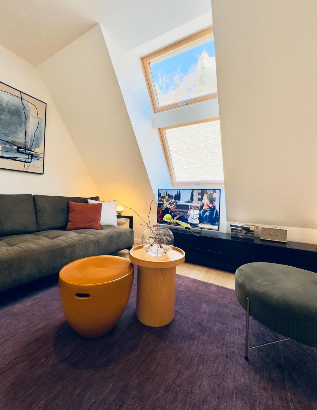 One-bedroom Loft Apartment. Featuring a private entrance, this air-conditioned apartment is comprised of 1 living room, 1 separate bedroom and 1 bathroom with a shower and a hairdryer. The well-fitted kitchen features a stovetop, a refrigerator, a dishwasher and kitchenware. The apartment offers a washing machine, a tea and coffee maker, a wardrobe, a flat-screen TV with streaming services, as well as a quiet street view. The unit offers 1 bed.