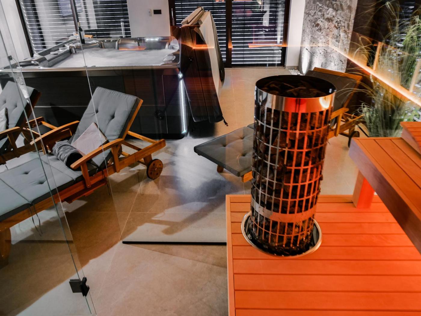 Chalet. This luxurious chalet provides a hot tub, a sauna and a fireplace. Featuring a private entrance, this chalet consists of 1 living room, 5 separate bedrooms and 3 bathrooms with a bath and a shower. The chalets kitchen, which features kitchenware, is available for cooking and storing food. There is a seating area, a dining area and a terrace and complimentary winechampagne is provided for guests. The unit offers 8 beds. ;